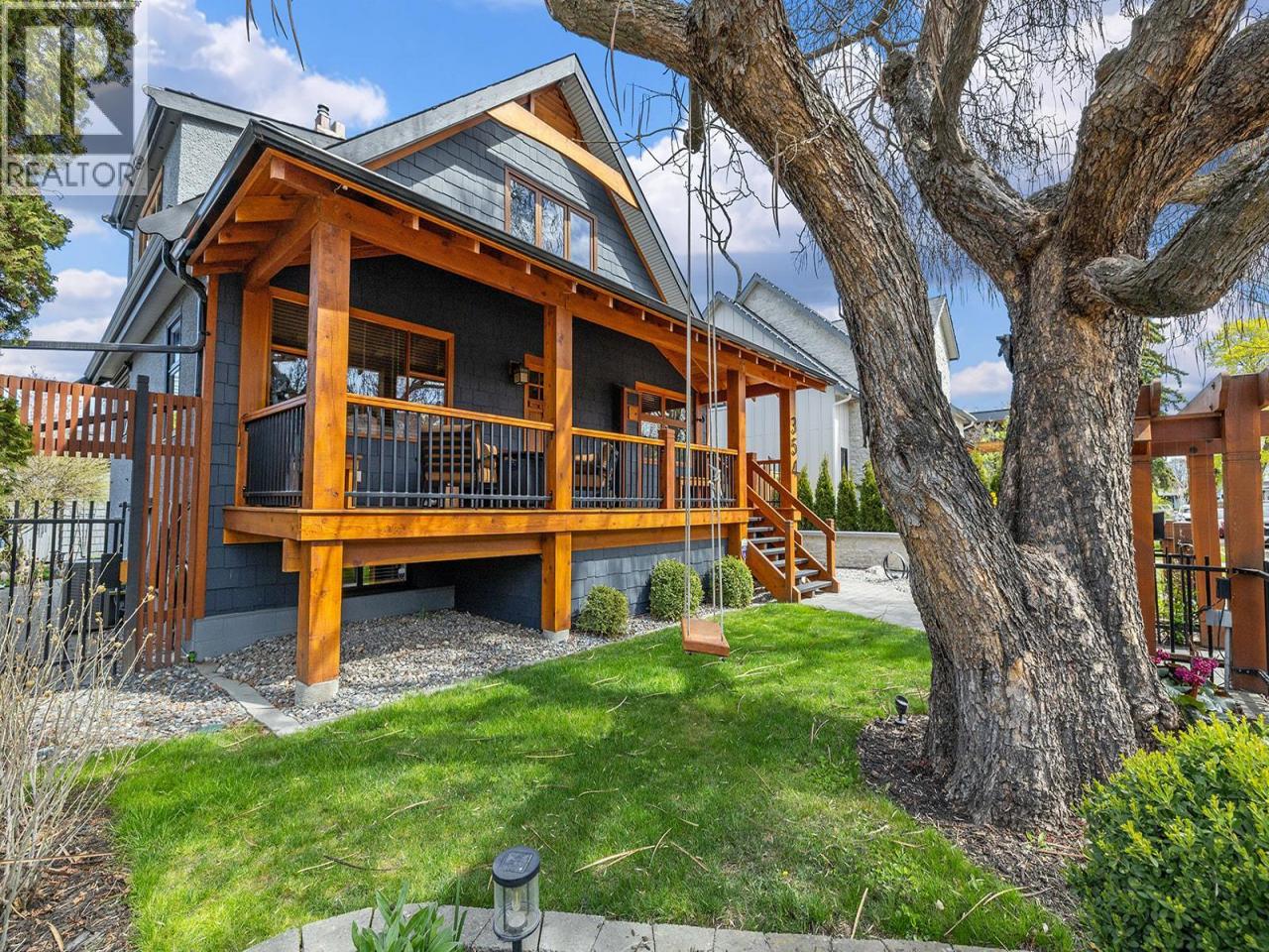 Discover a truly rare opportunity to live mere steps from the beach in one of Kelowna's most prestigious and sought-after neighbourhood. This is a lifestyle property where timeless architectural design seamlessly converges with modern, daily luxury. Tucked in a tranquil, private setting beneath mature trees. Every corner of this meticulously maintained home reflects a deep commitment to quality and care, creating a welcoming atmosphere of unparalleled warmth and versatility. The heart of the home is the custom Glen Canyon kitchen, crafted for both entertaining and functional daily use with gas range, natural stone countertops, and custom wood cabinetry. Elegant, refinished maple hardwood flooring unifies the main living spaces, complemented by thoughtful architectural details like crown moulding and tray ceilings, rich wood accents that lend a refined texture to the interiors. Adding exceptional value and living options is the fully self-contained, one-bedroom in-law suite featuring a private entrance—perfect for extended family, guests, or potential rental income. Outdoor living invites you to enjoy your morning coffee on the charming, covered front porch, sun-filled deck on the top floor or deck right outside the dining room which leads to a perfectly private yard with low-maintenance landscaping. Further enhancing the property’s utility and potential is the detached double garage/studio. Complete with 220-volt power and alley access, the current zoning allows for the construction of a carriage home. Ample parking ensures room for all vehicles, including boats or RVs. This is more than a home; it is a legacy property defined by an exceptional location that seldom comes to market, offering supreme walkability to the beach, schools, parks, and the dynamic restaurants and shops of Kelowna's vibrant downtown core. (id:6769)Construction Info