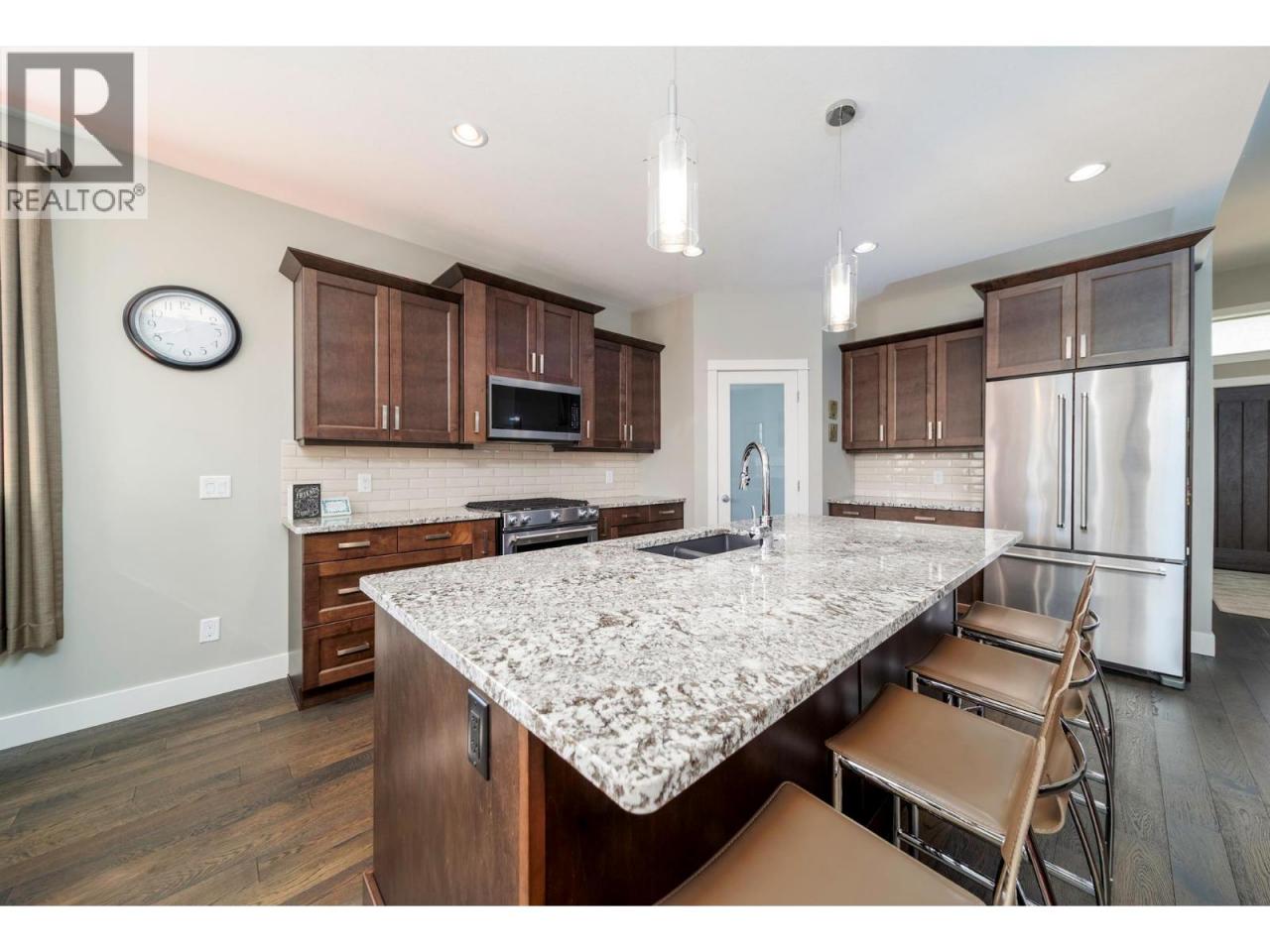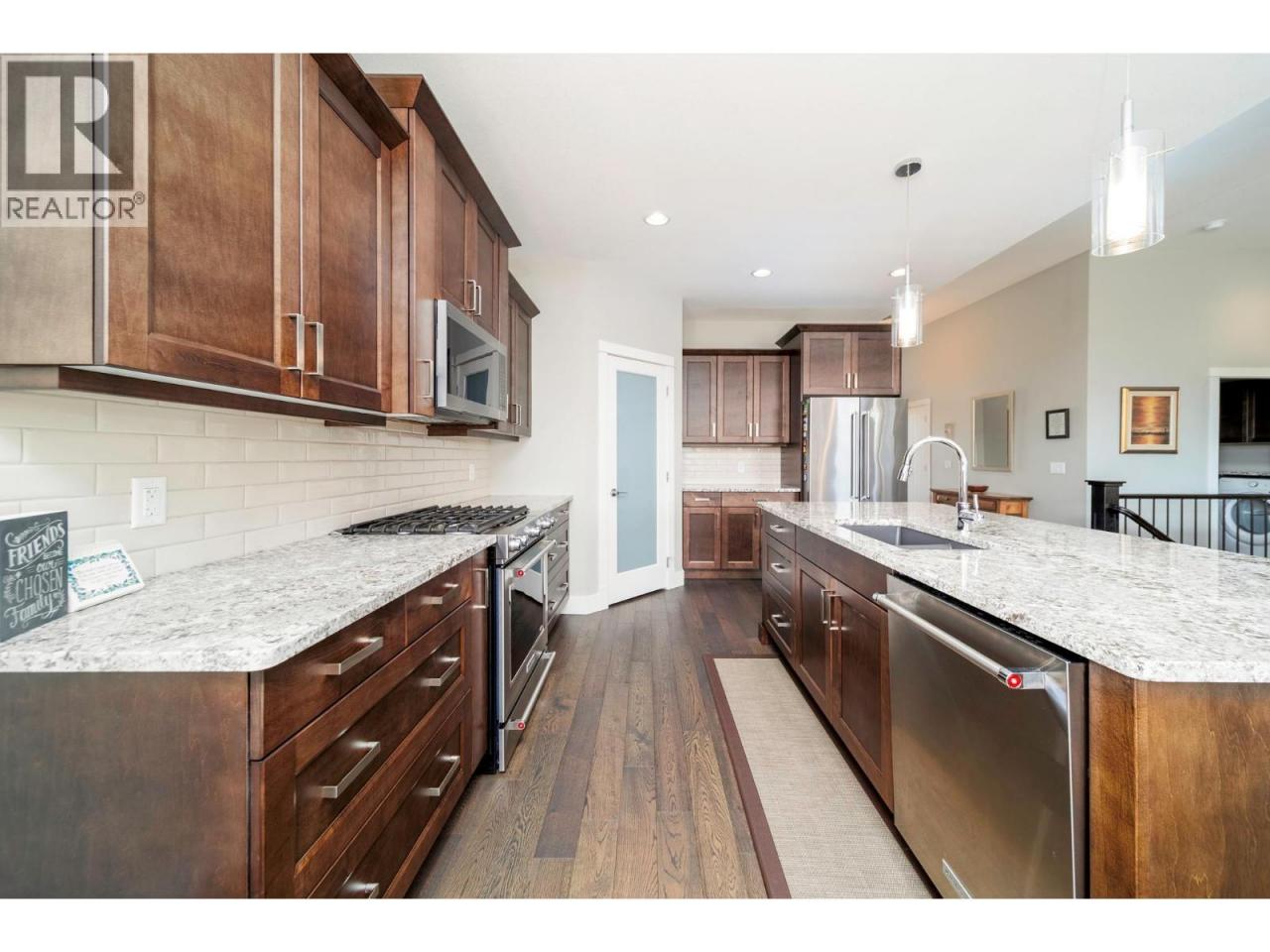 Pride of ownership shows through out this move-in ready home in one of Lake Country’s most desirable communities. Positioned near the top of Apex Crescent, this refined walkout rancher by Richdale Homes captures unobstructed valley views with glimpses of Wood & Duck Lakes, offering a quiet, elevated setting. Designed with both elegance and function in mind, the main level features 11’ ceilings in the great room, a statement gas fireplace with custom built-ins, and seamless indoor-outdoor flow to the view deck with natural gas hookup and remote-controlled awning. The chef-inspired kitchen is anchored by a quartz island, complemented by stainless steel appliances, gas range, warming drawer, and a walk-in pantry. The primary suite is a private retreat with a spa-like ensuite including a soaker tub, glass shower, and walk-in closet. A second bedroom and well-appointed laundry complete the main. The fully finished walkout level is ideal for entertaining, featuring a spacious rec room, custom dry bar with live-edge countertop, beverage fridges, two additional bedrooms, and versatile flex space. Thoughtful upgrades include Phantom screens, smart security with cameras, FireSmart certification, radon mitigation, and hot water tank replacement (2026). The oversized garage, flat driveway, and fully fenced, landscaped yard complete this exceptional offering. (id:6769)Construction Info